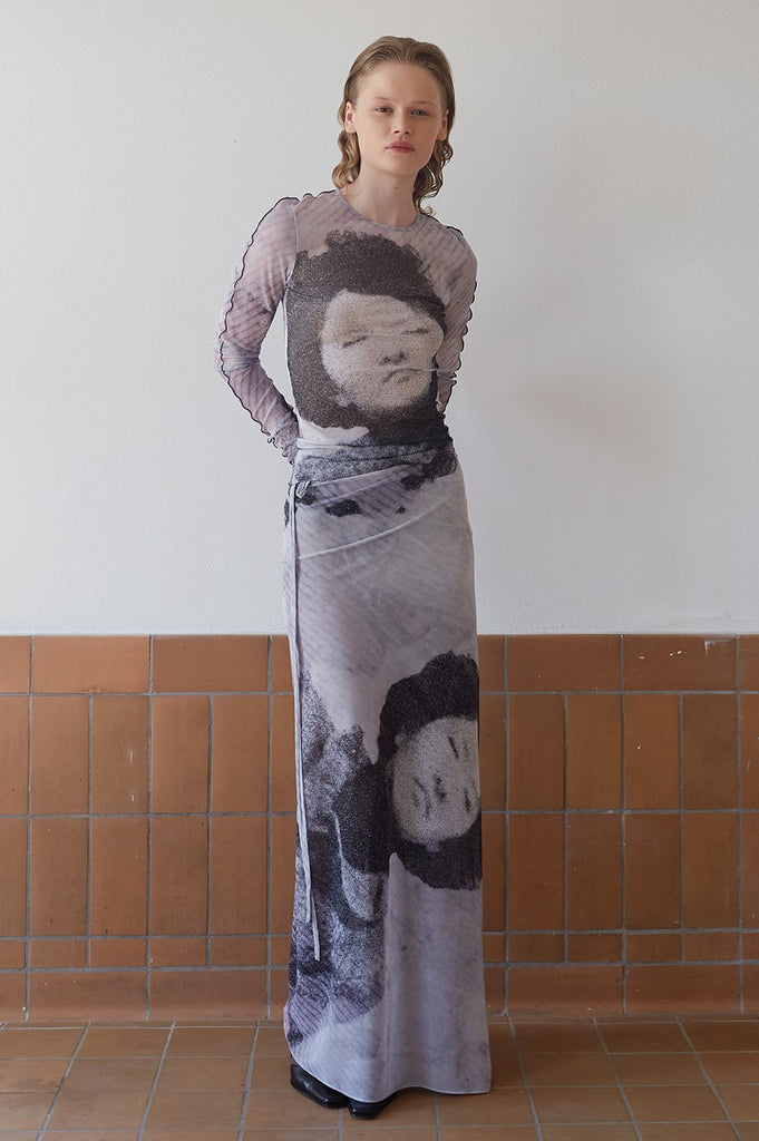 - Printed Mesh cover up wrap skirt