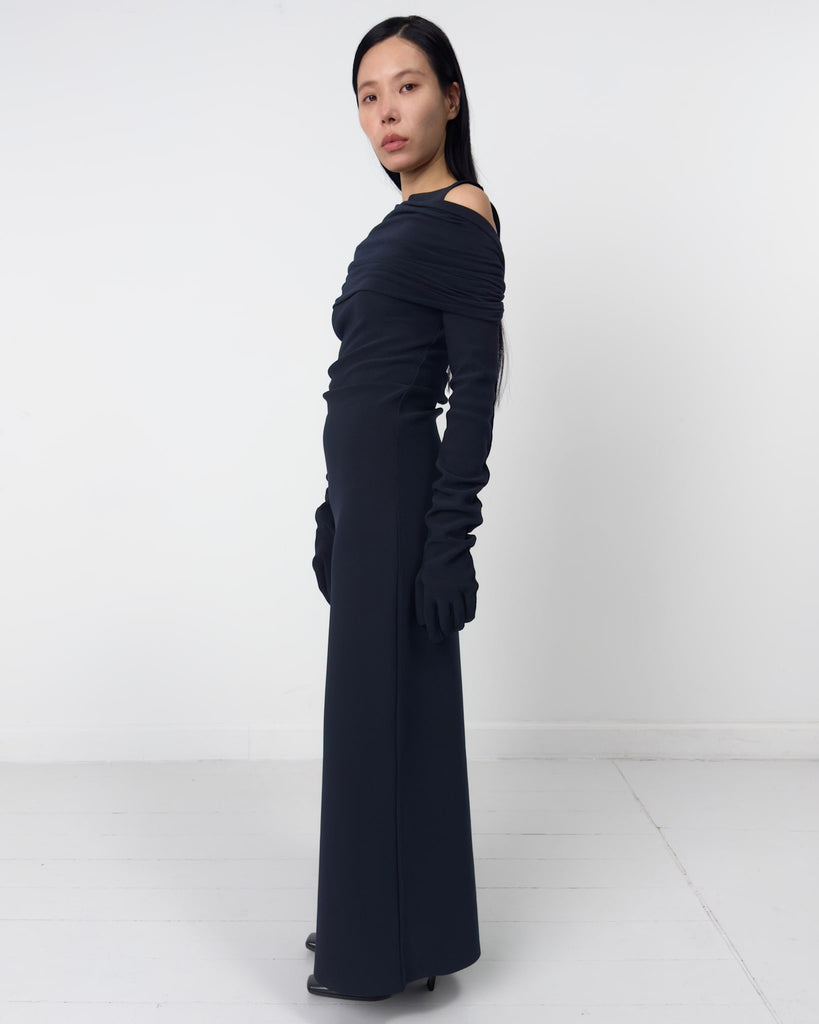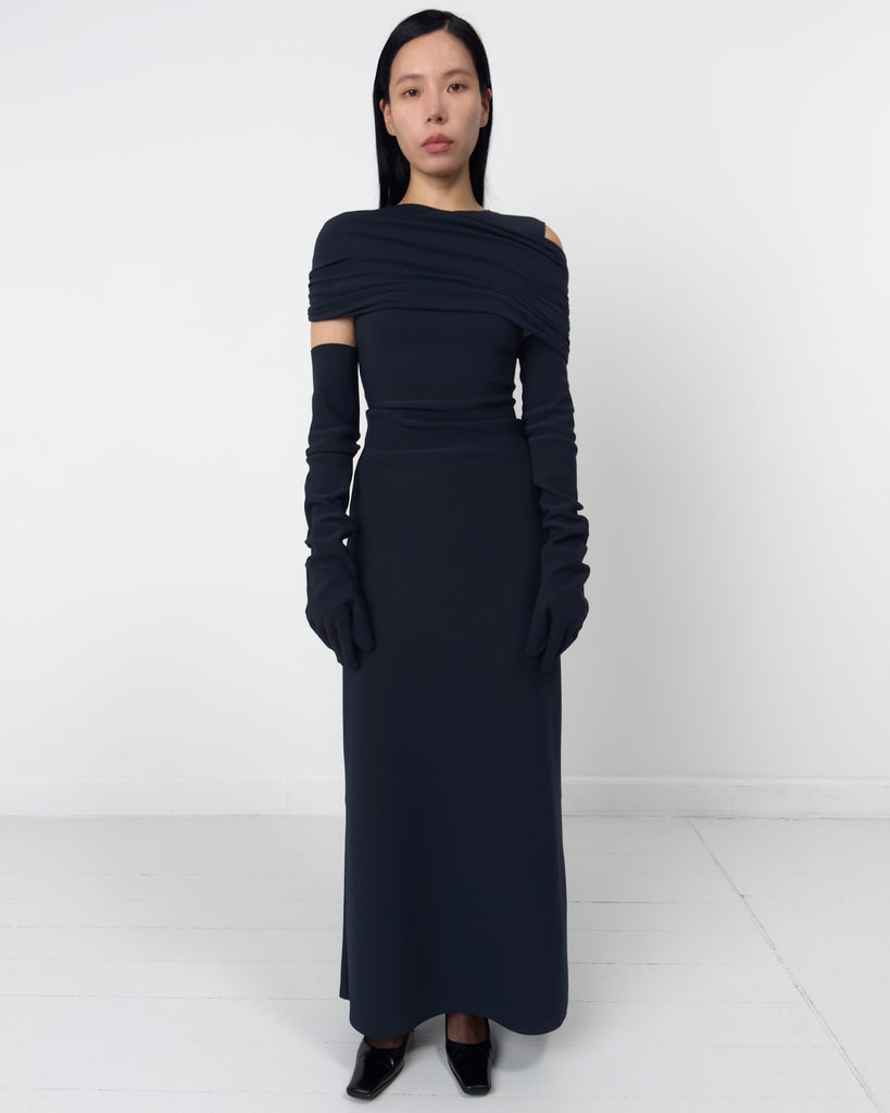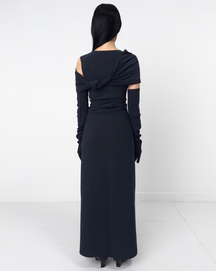 Lay1 Shawl in our signature lightweight bonded crêpe with knot detail.