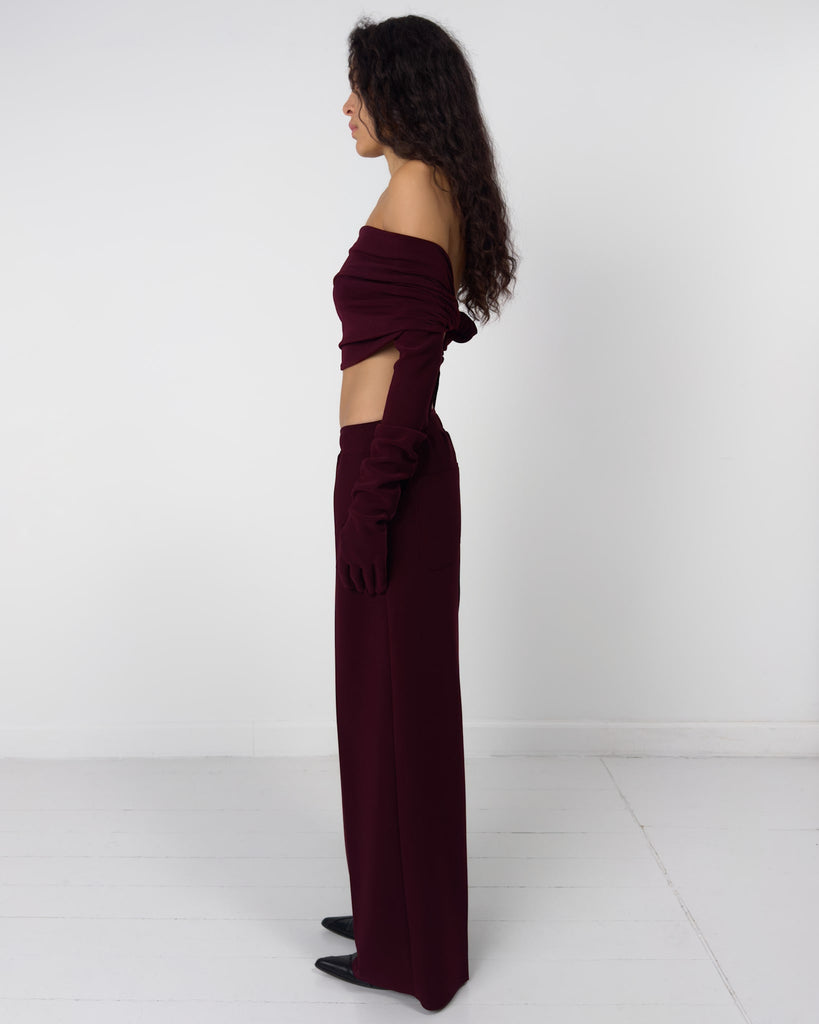 Lay1 Shawl in our signature lightweight bonded crêpe with knot detail.