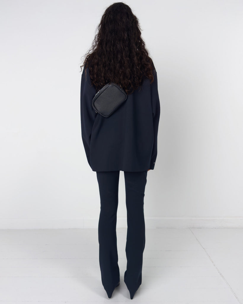 Lay2 Slim trousers in our signature medium-weight bonded crêpe with a narrow fit, elastic band at mid-rise waist.