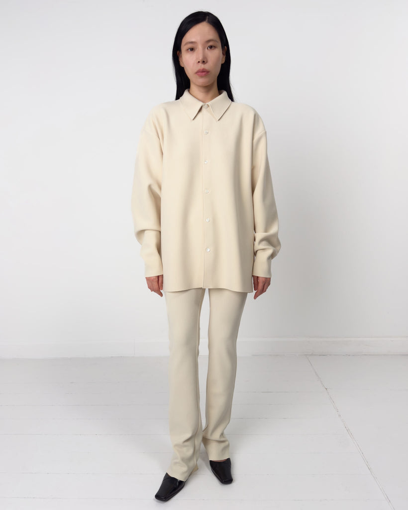 Lay2 Slim trousers in our signature medium-weight bonded crêpe with a narrow fit, elastic band at mid-rise waist.