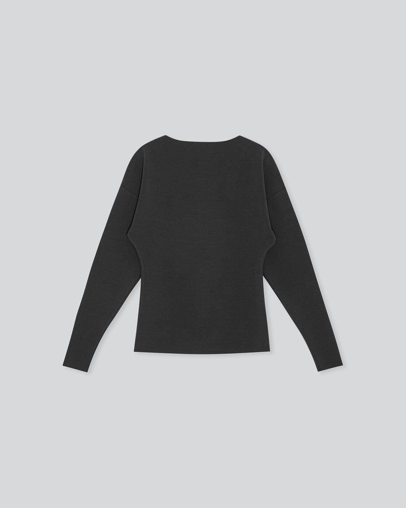 Lay3 Boatneck cardigan in our signature heavyweight bonded crêpe, with long sleeves, Boat neckline, dropped shoulders and button-down front.