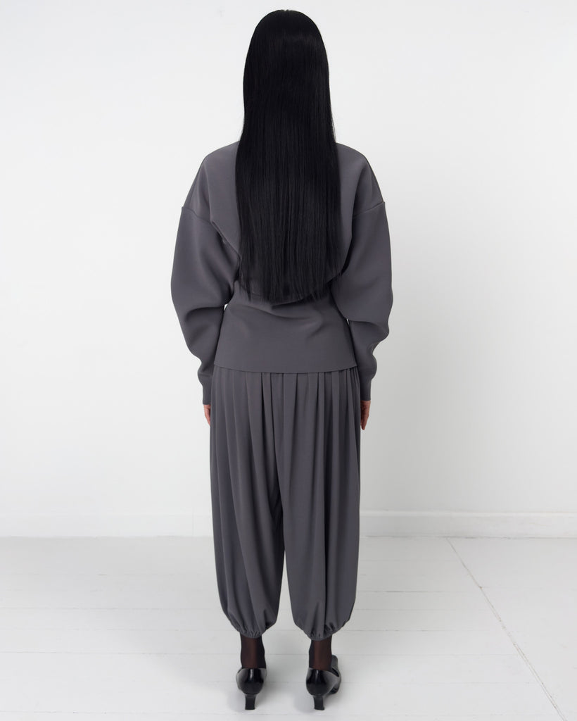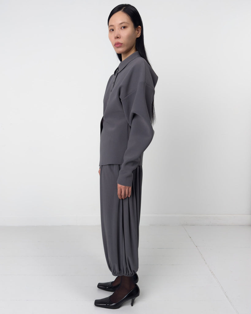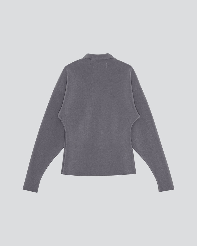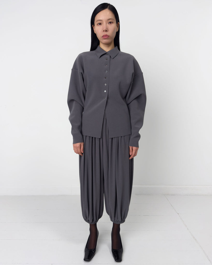 Lay3 Point Collar cardigan in our signature heavyweight bonded crêpe, with long sleeves, Boat neckline, dropped shoulders and button-down front.