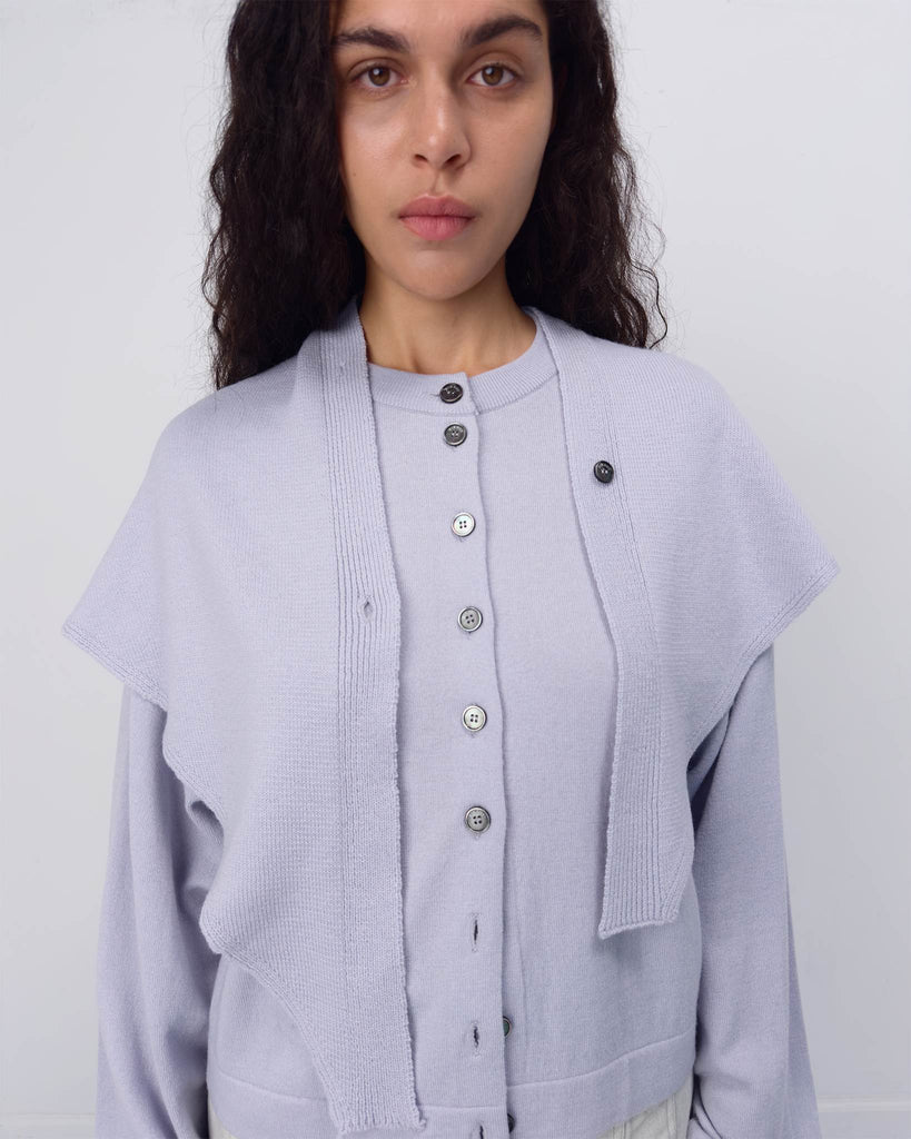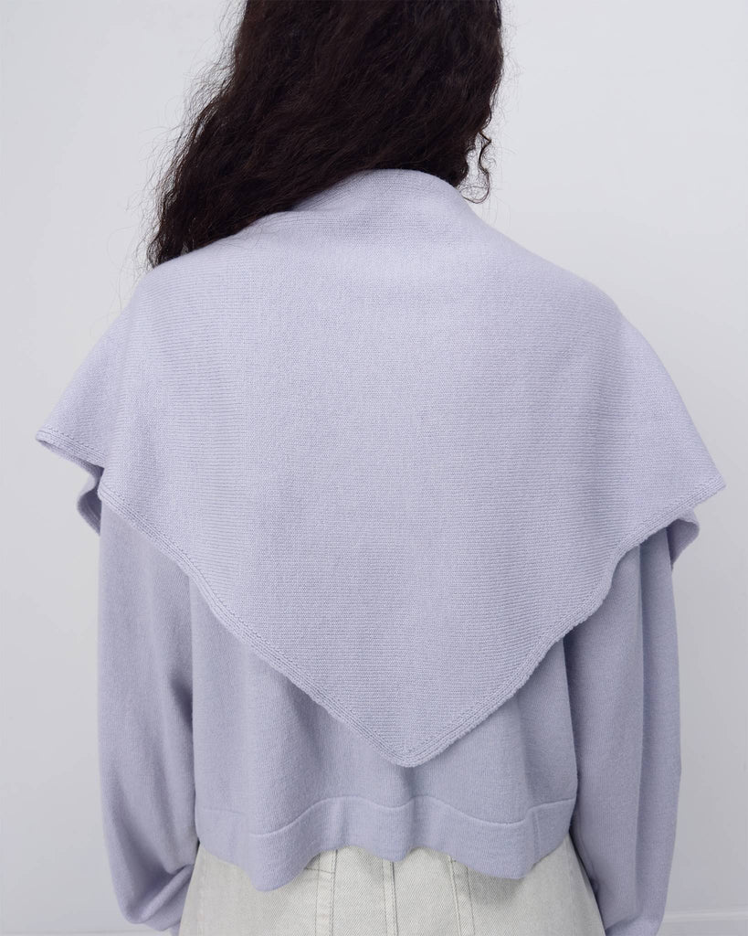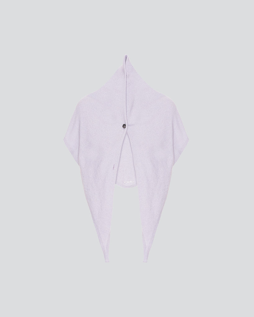 Knit scarf in triangle silhouette and ultra-soft handle, with button closures.