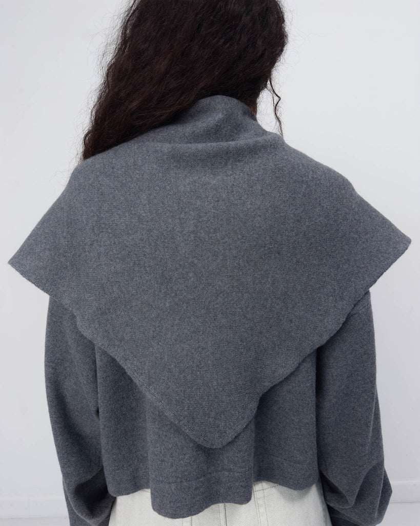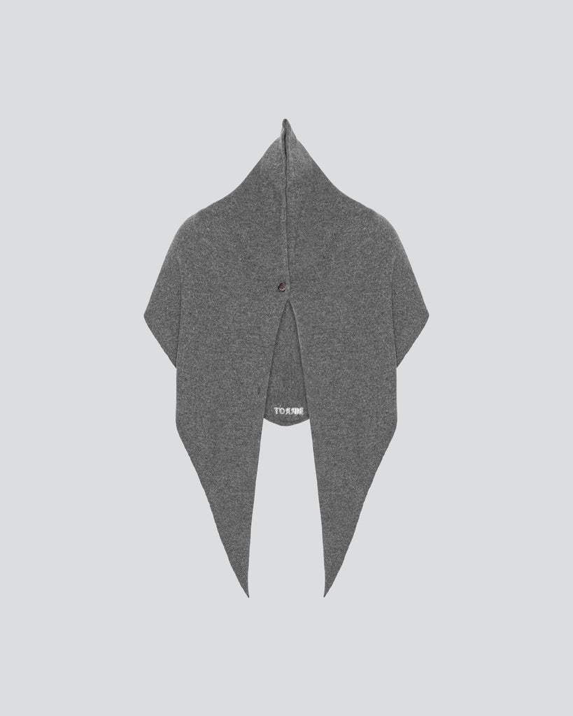 Knit scarf in triangle silhouette and ultra-soft handle, with button closures.
