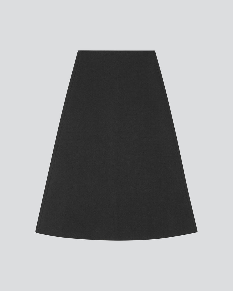 Lay2 A-line skirt in medium-weight bonded crêpe with high-rise waist and back patch pockets.