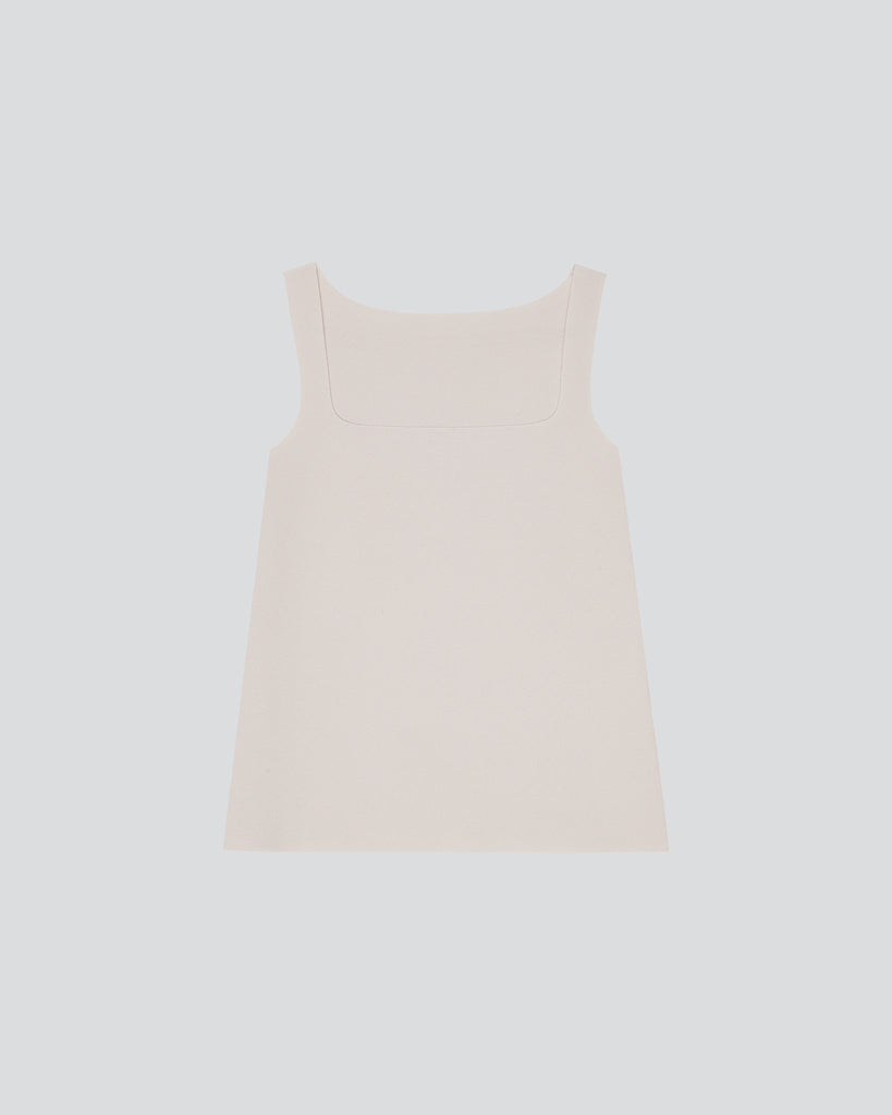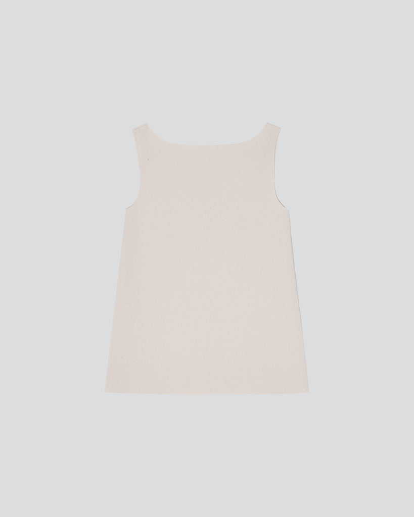 Lay2 sleeveless top in medium-weight bonded crêpe with a square neckline and raw edge finishing.