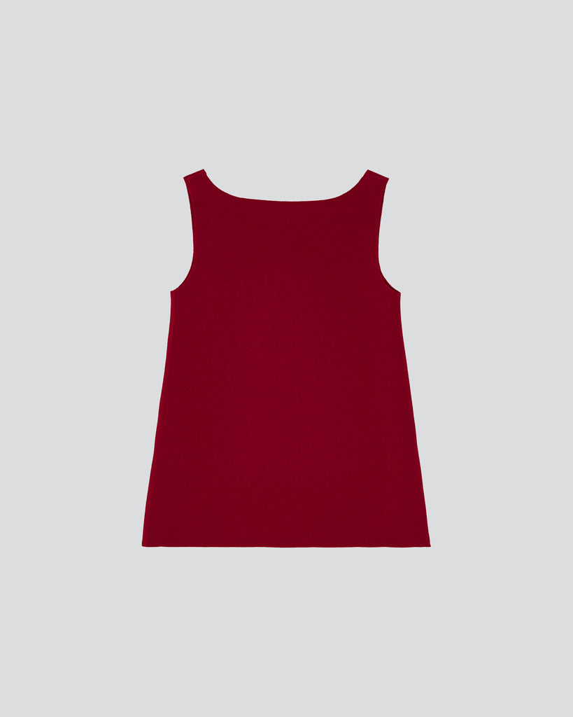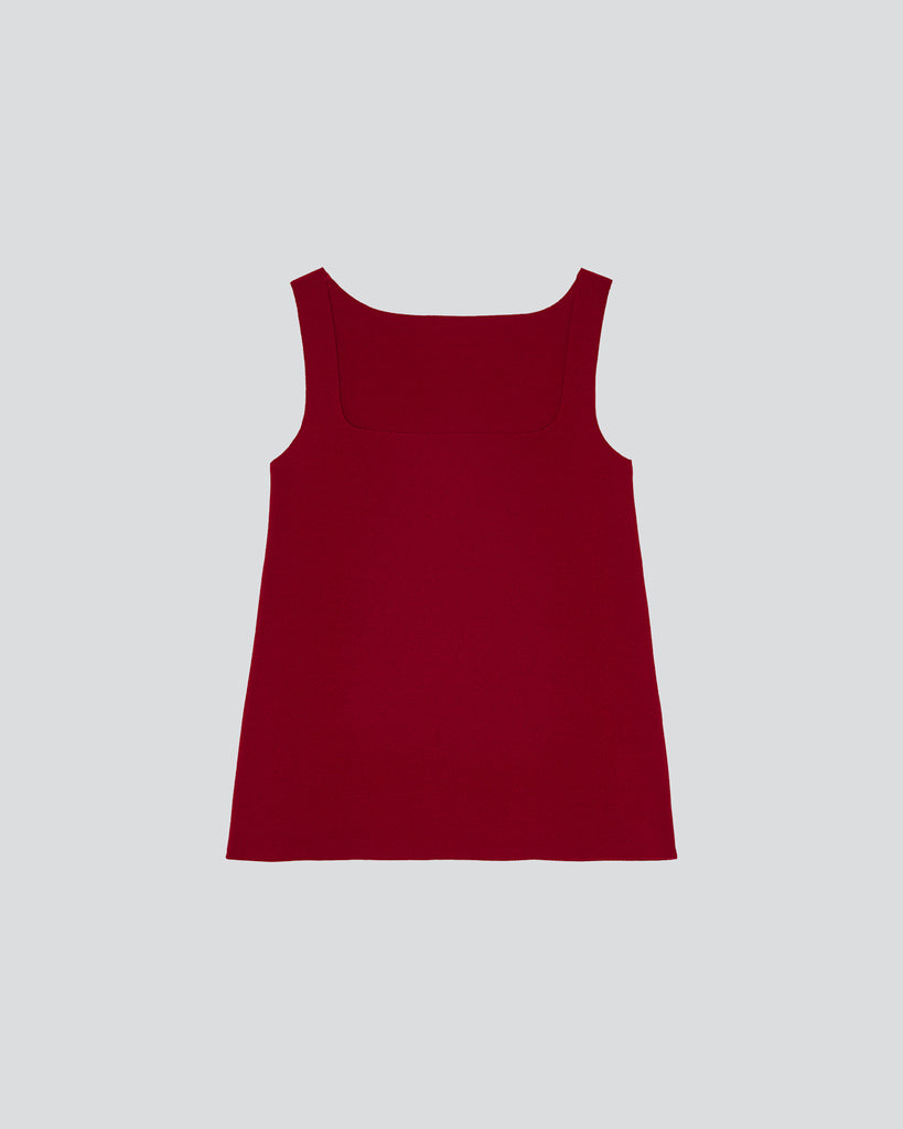 Lay2 sleeveless top in medium-weight bonded crêpe with a square neckline and raw edge finishing.