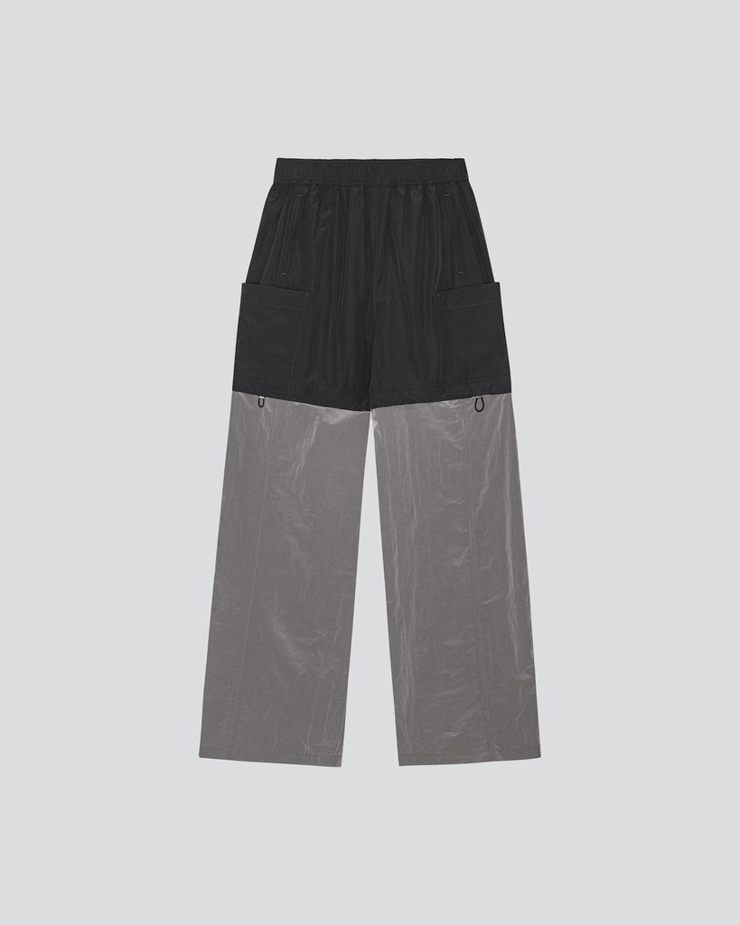 Holiday Trousers with elasticated waistband, wide legs, multiple pockets, zip closures, drawstring fastenings and fully detachable panels at legs for versatile styling.